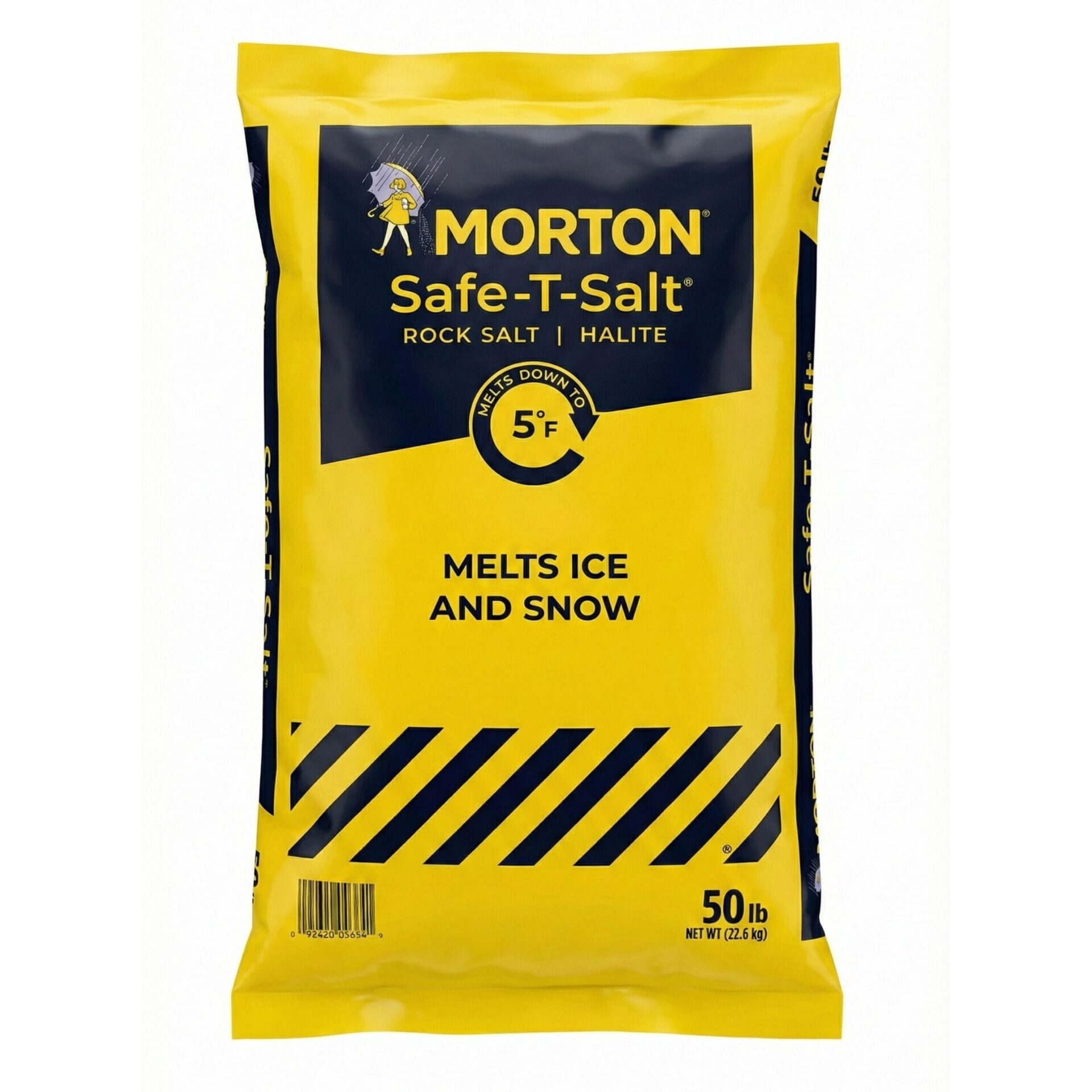 America’s Trusted Brand of Rock Salt. As temperatures drop, don’t find yourself in a slippery situation. Just look for the striped bag you know and love. Morton Safe-T-Salt has been helping families clear ice and snow from their driveways and walkways for generations.